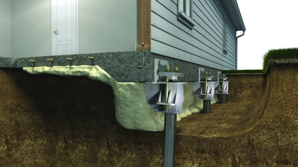 Repair methods include polyurethane foam jacking, concrete pressed piling, steel piers, helical piers, concrete piers, and slabjacking/mudjacking.